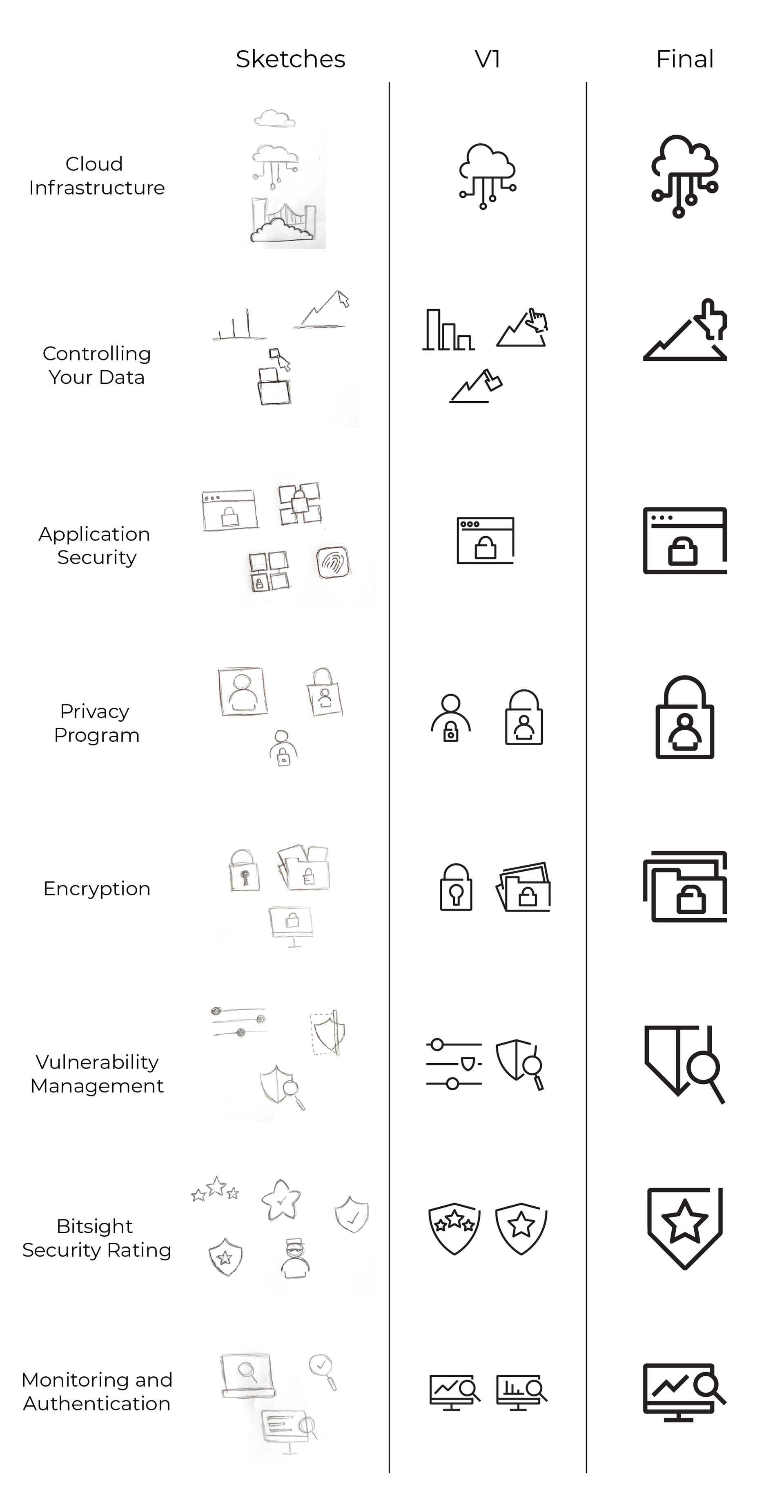 GoalsTranslated abstract ideas (privacy, protection, transparency) into simple visual metaphors.